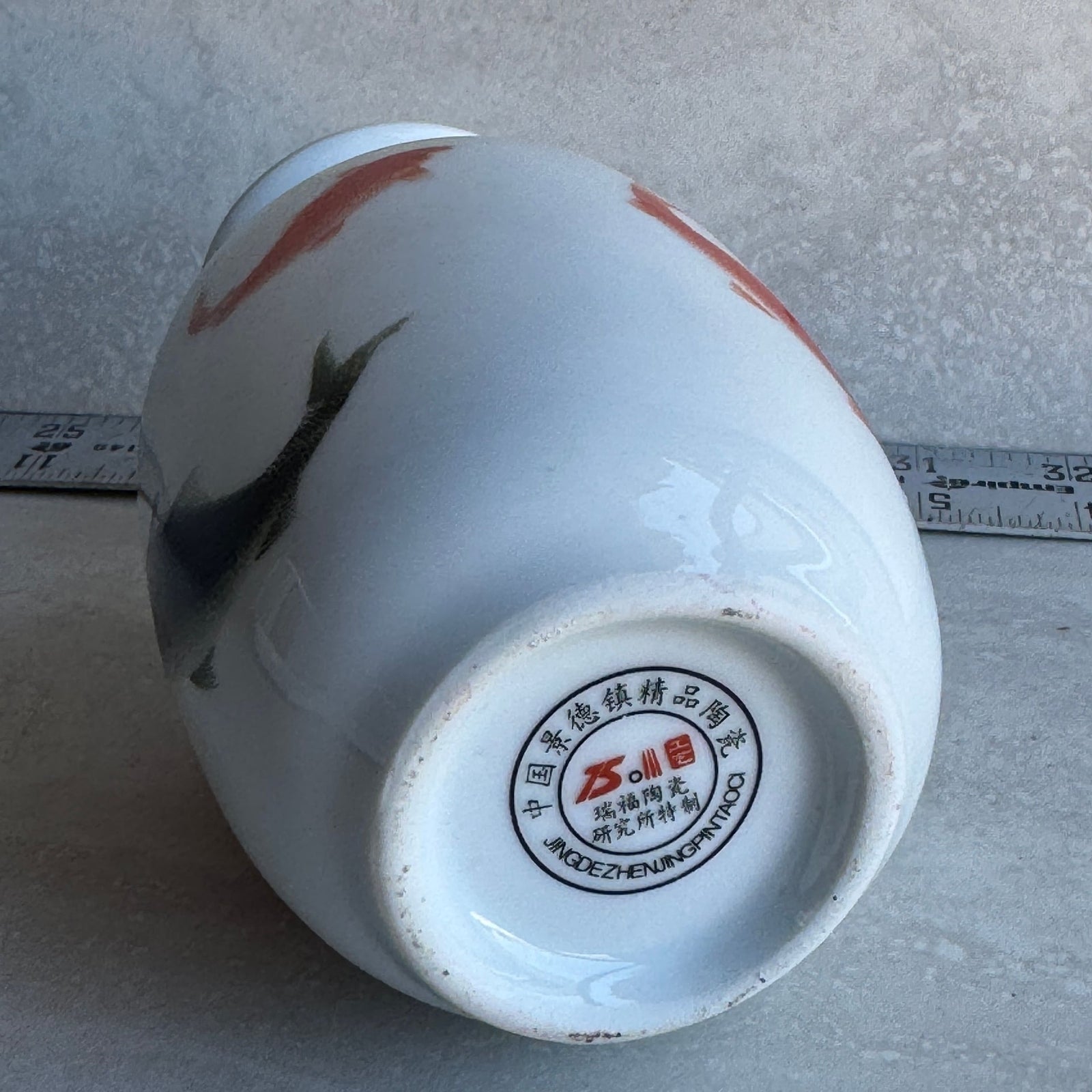 Elegant 6-inch oval Chinese porcelain vase featuring hand-painted Koi fish designs in vibrant red and black. This beautiful vase is perfect for home decor, adding a touch of traditional Asian artistry to any room. Excellent pre-owned condition, with no chips, cracks, or imperfections. Its unique design makes it a wonderful collectible or a thoughtful gift.