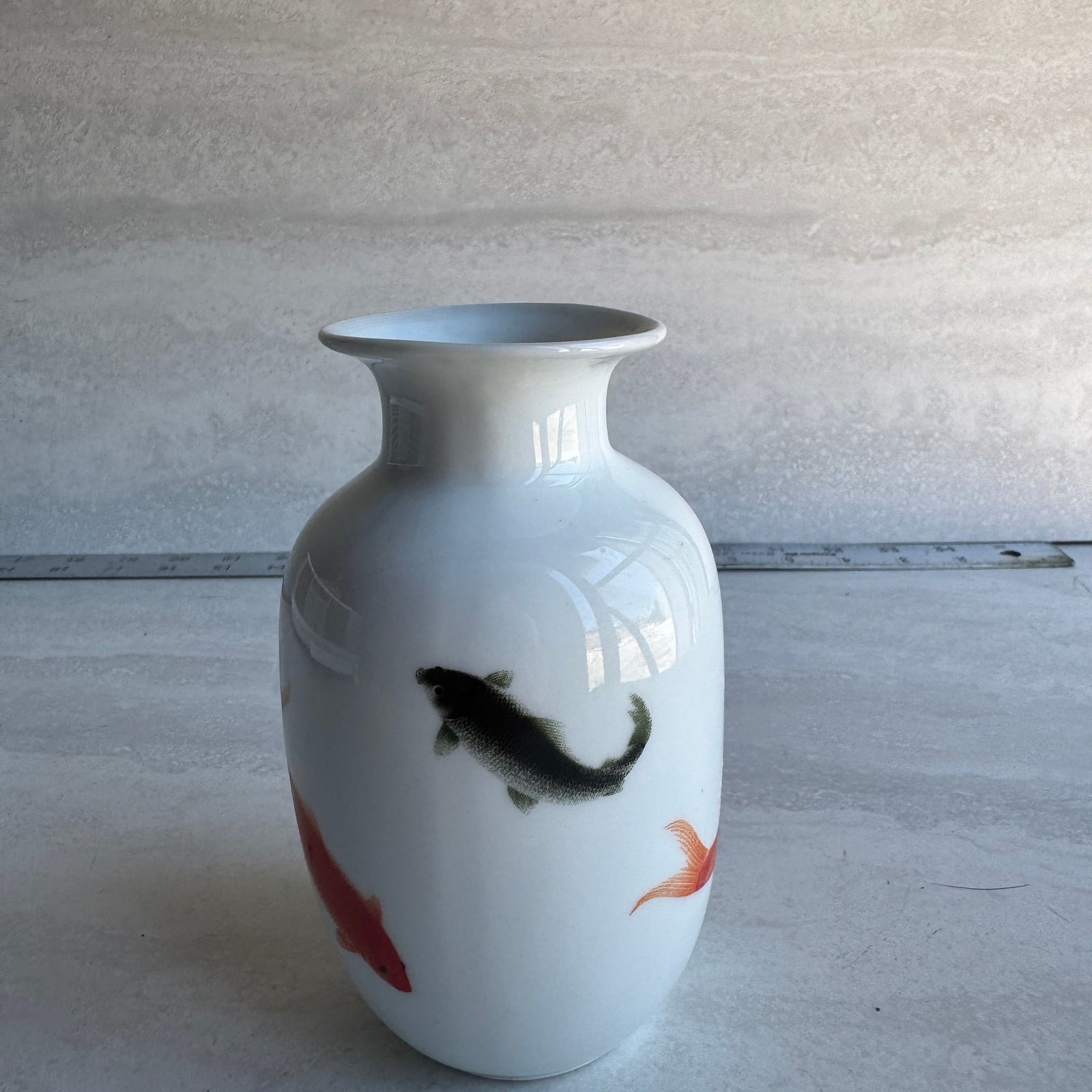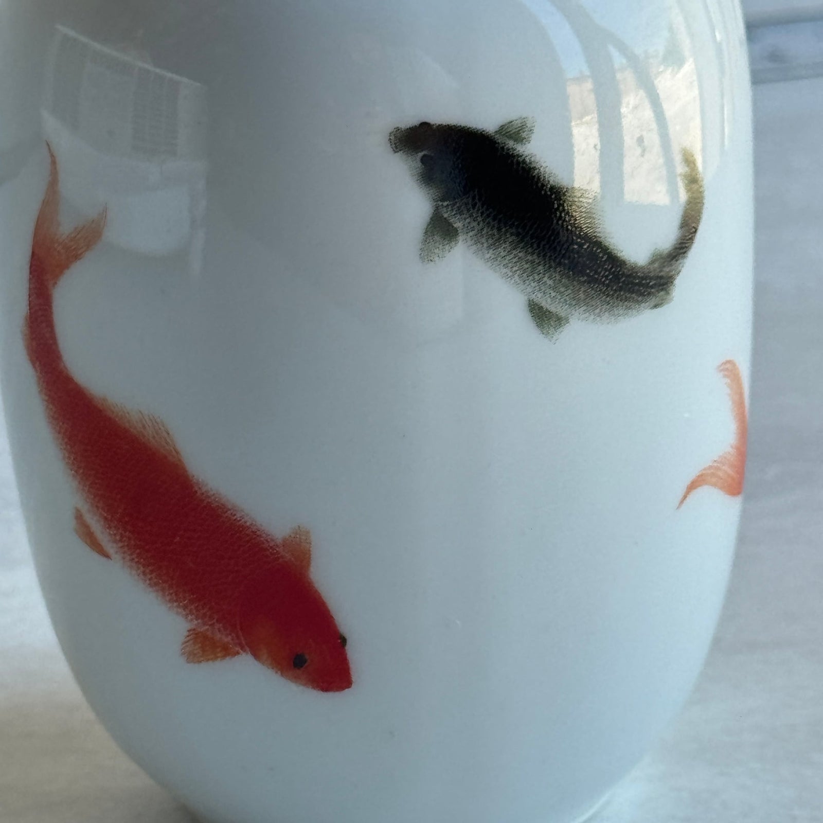 6" Oval Chinese Koi Fish Porcelain Vase