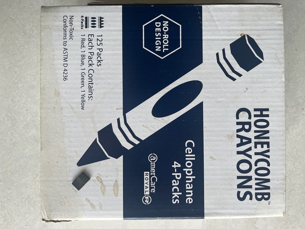 AmerCare Honeycomb Crayons No Roll 4 Pack Red/Blue/Green/Yellow 500 Total